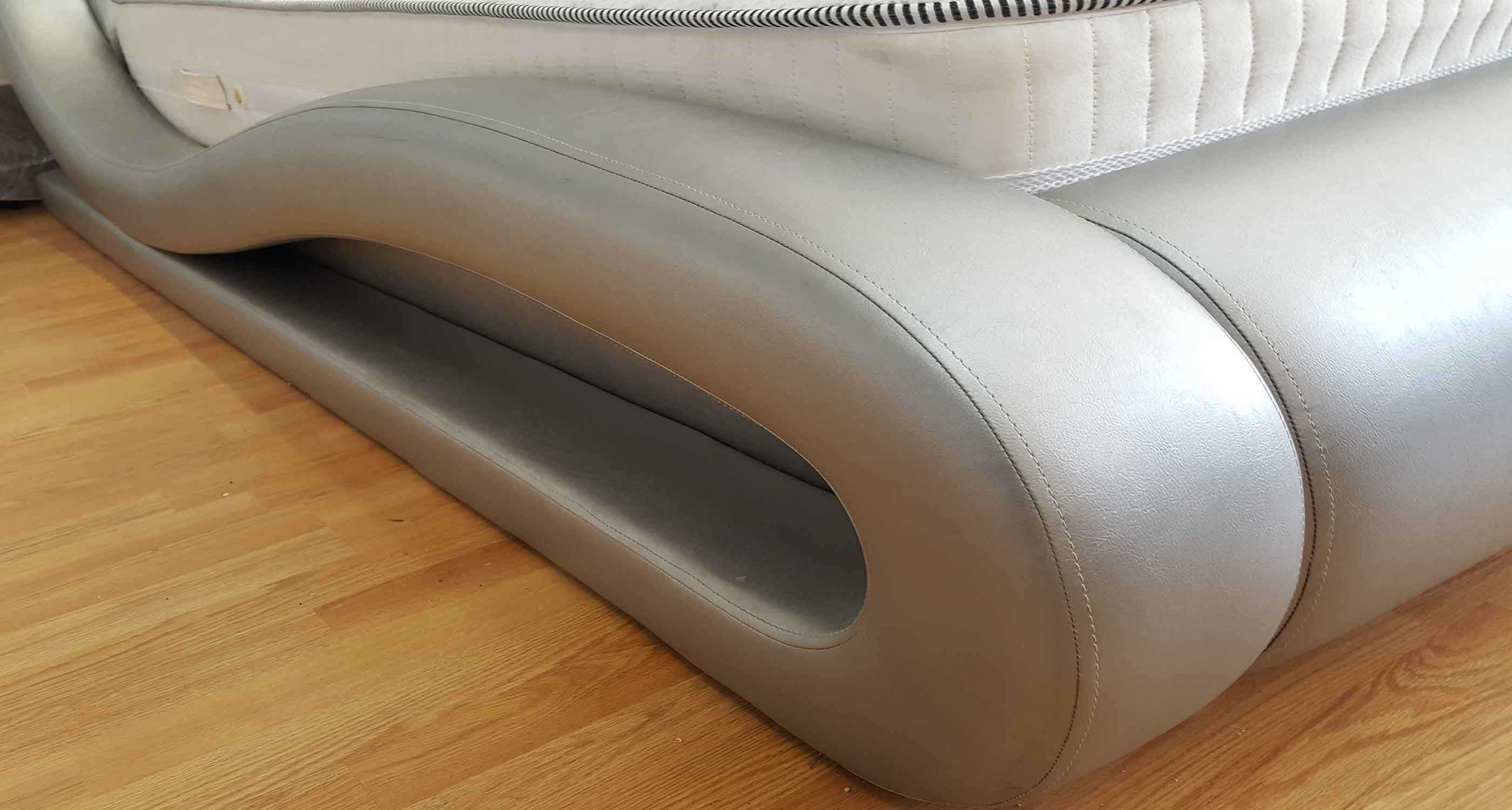 Caracteristici speciale: Patul este construit pe cadru de lemn tapitat in intregime cu piele ecologica PU, rezistenta in timp si foarte usor de intretinut.